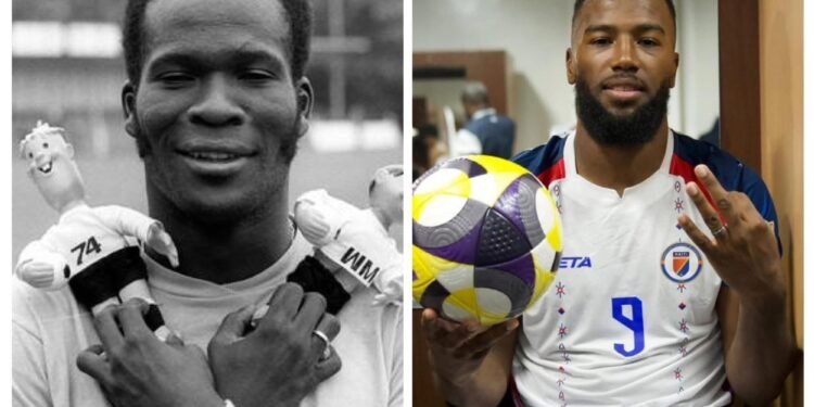À tout seigneur tout honneur! Ici, on ne parle pas de buteur sans se référer à Emmanuel Sanon. Le bourreau de Keylor Navas a-t-il fait mieux que le tombeur de Dino Zoff dans ce domaine précis de marquer plus que deux buts dans un seul match en Sélection Nationale? Et Fénol Charles, meilleur buteur de la Caraïbe et de l’Amérique Centrale en 1957, compétition qu’il a éclaboussée de ses huit buts, dont trois contre Cuba que nous avions battu 6-1. Il serait intéressant que la mise en perspective des trois buts de Nazon embrasse tous les triplés réalisés en Sélection. Mais le texte en sortirait alourdi. Ce n’est pas un livre. Voyez la liste non exhaustive sur cette même page Facebook prochainement. Pour les présentes minutes, revisitons donc Manno Sanon et Fénol Charles en comparaison, pour rappel, avec le coup du chapeau de Duckens Nazon. Ayons à l’esprit, question de méthode, que toute performance en Sélection Nationale est hiérarchisée selon qu’il s’agit de match amical ou de compétition, de préliminaires ou de phase finale de Gold Cup, de match de qualification en Coupe du monde contre Costa-Rica, par exemple, ou la victoire 2-0 contre Équateur en Gold Cup 2002. Et puis, un but contre Îles Vierges ne pèse pas aussi lourd qu’un autre contre le Canada de 2025. Une dernière illustration: tout sublime que fut le but de Descollines contre Cuba en 1999, à Los Angeles, en barrage de Gold Cup, il ne peut égaler l’ogive en demi-volée de Monès Chéry sous la transversale des États-Unis, Gold Cup 2009. Tous ces exemples répondent à deux critères prépondérants: le niveau de la compétition et le prestige de l’adversaire.