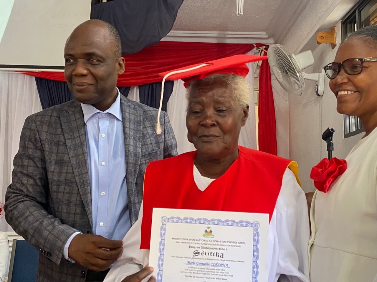 Près d’une vingtaine d’adultes du centre d’alphabétisation non formelle de Girardeau, à Pétion-Ville, ont reçu leur certificat de fin de formation lors d’une cérémonie à l’église Assemblée de la Pentecôte de Jésus-Christ. Le secrétaire d’État à l’Alphabétisation, Me Mozart Clérisson, a réaffirmé sa volonté de permettre à tous, quel que soit l’âge, de bénéficier d’une éducation de qualité.